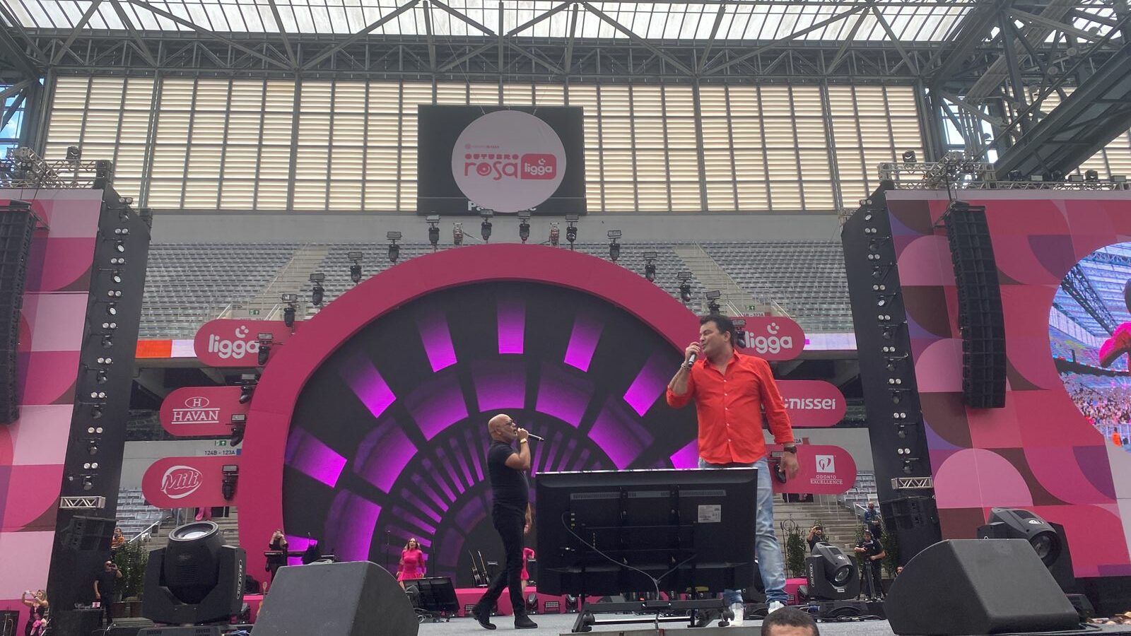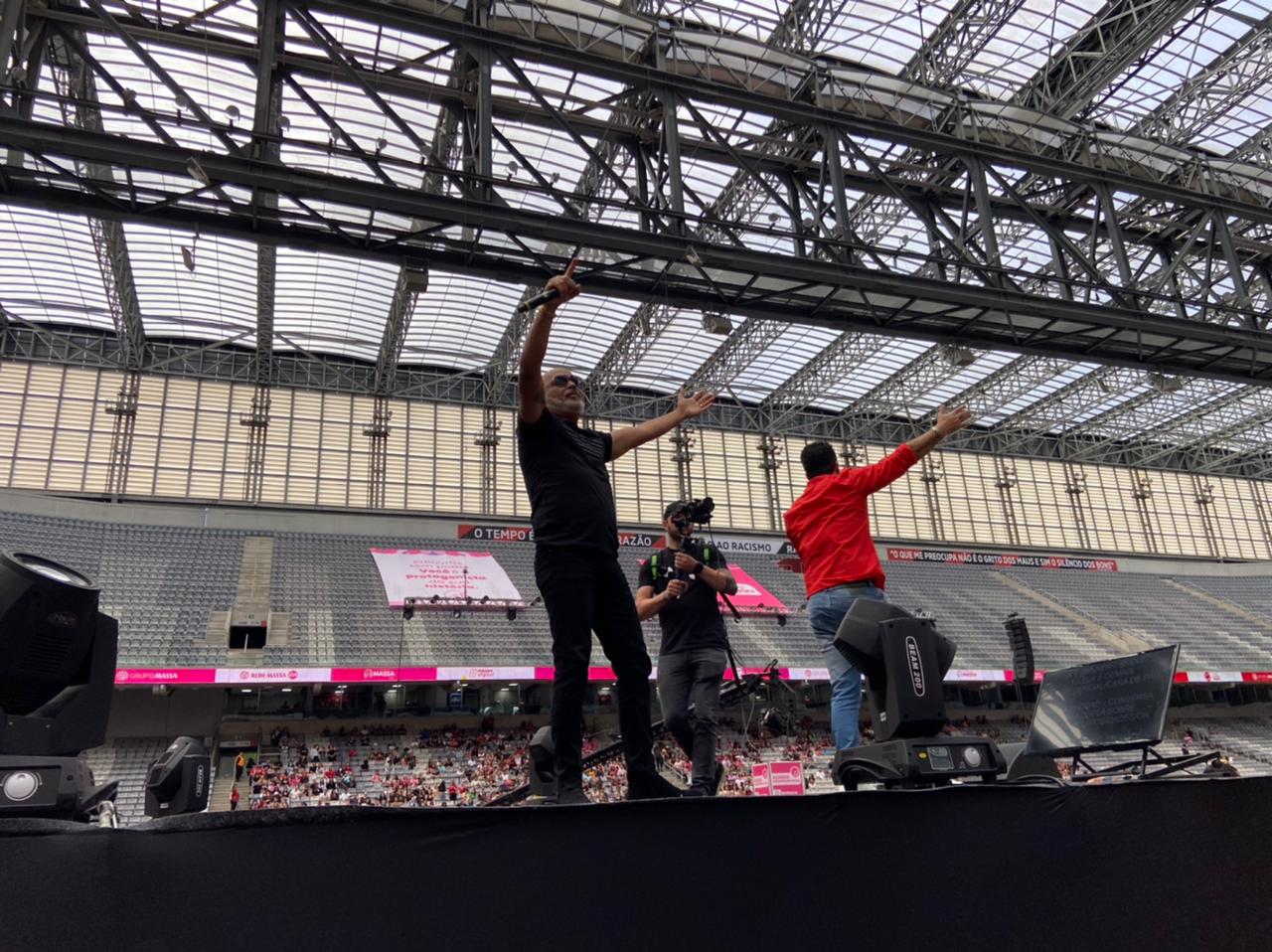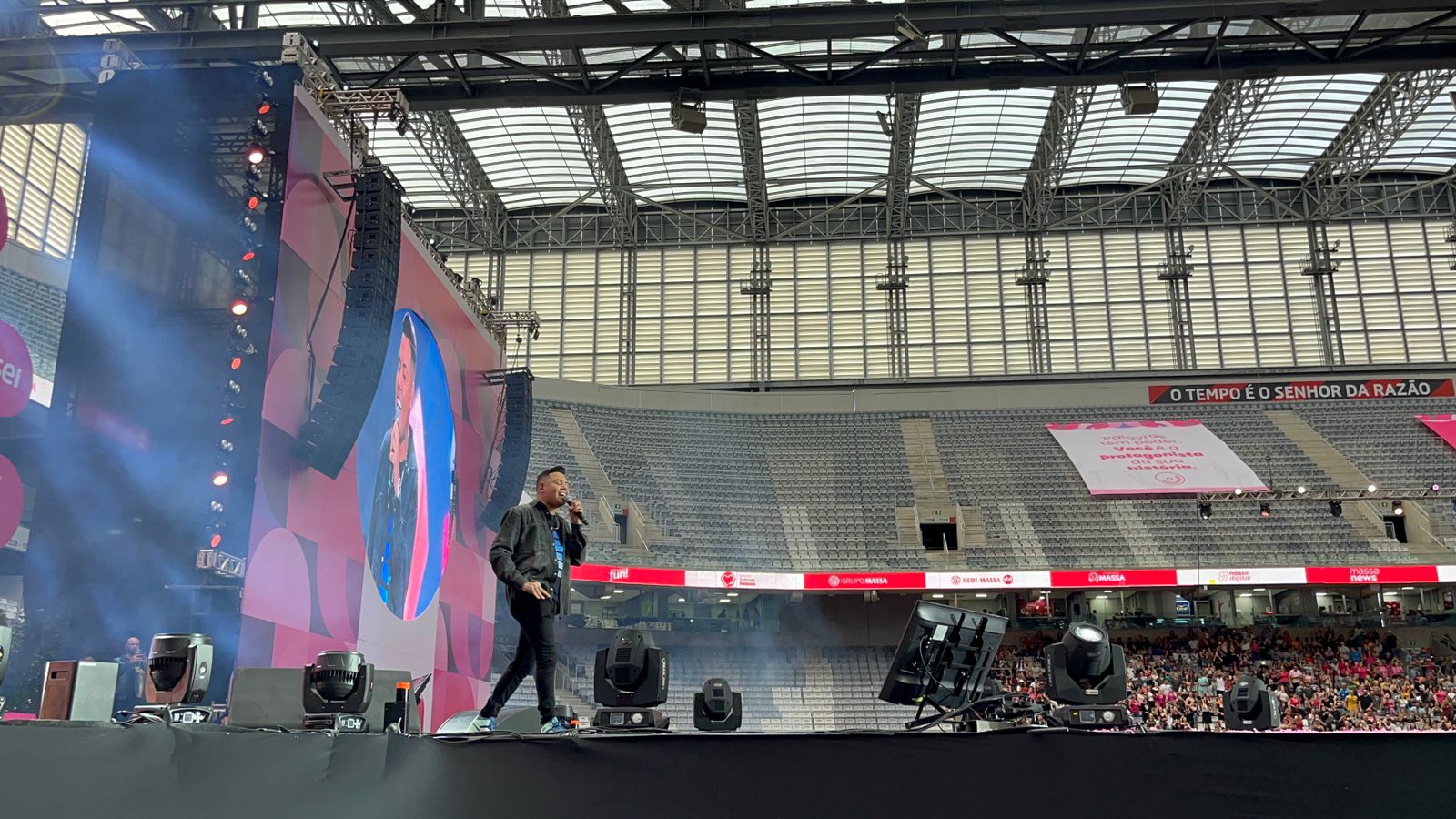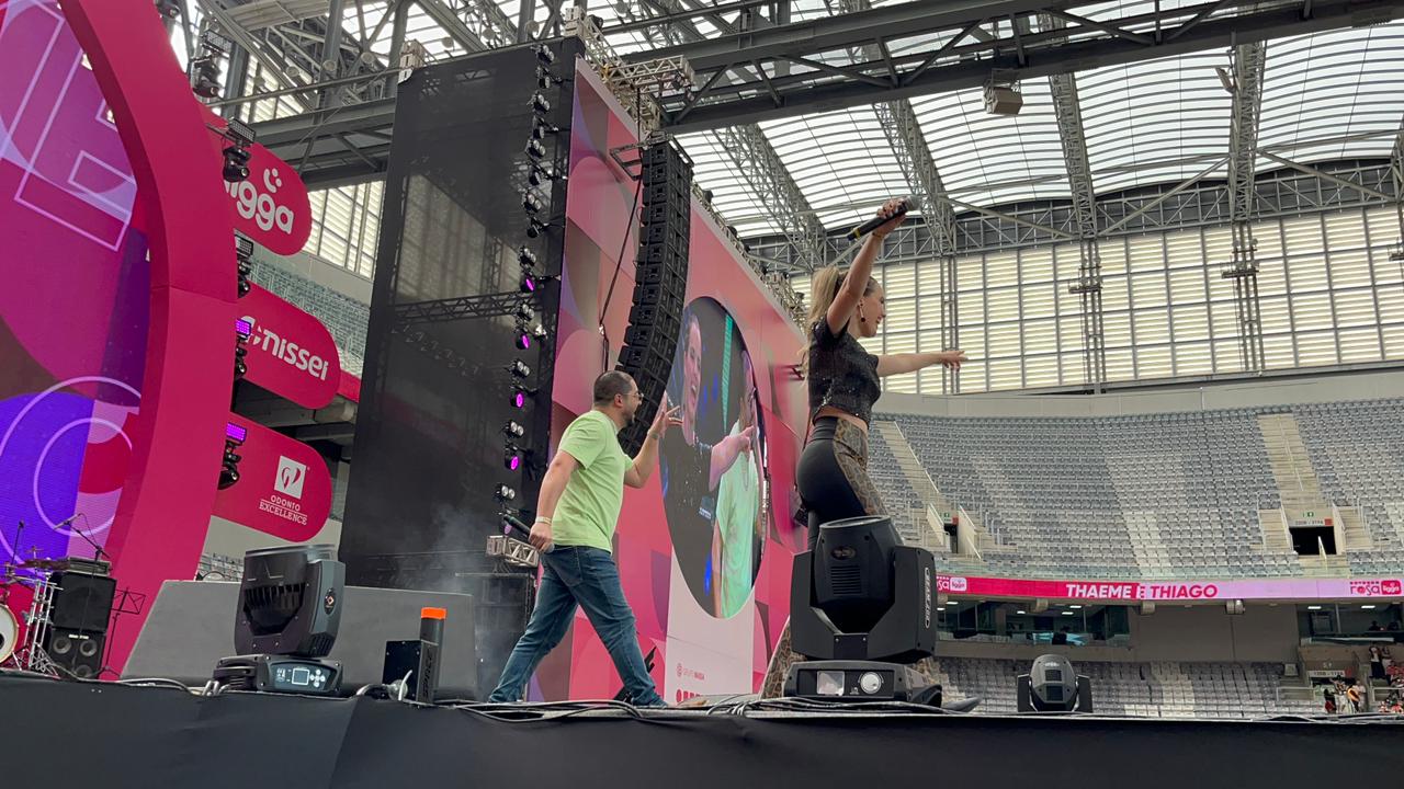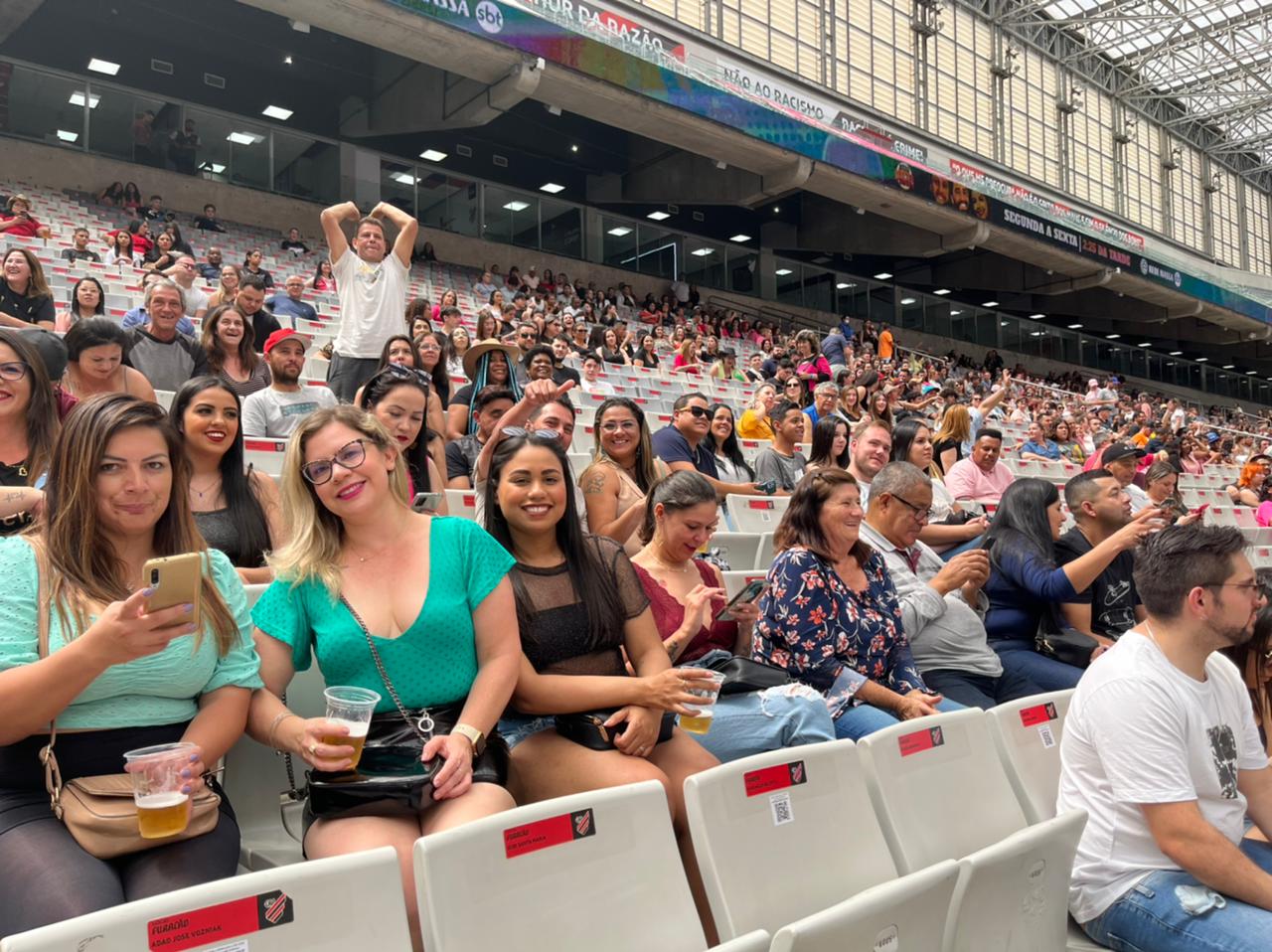- Apresentadora Simone Munhoz também aparece para cumprimentar o público na Arena da Baixada