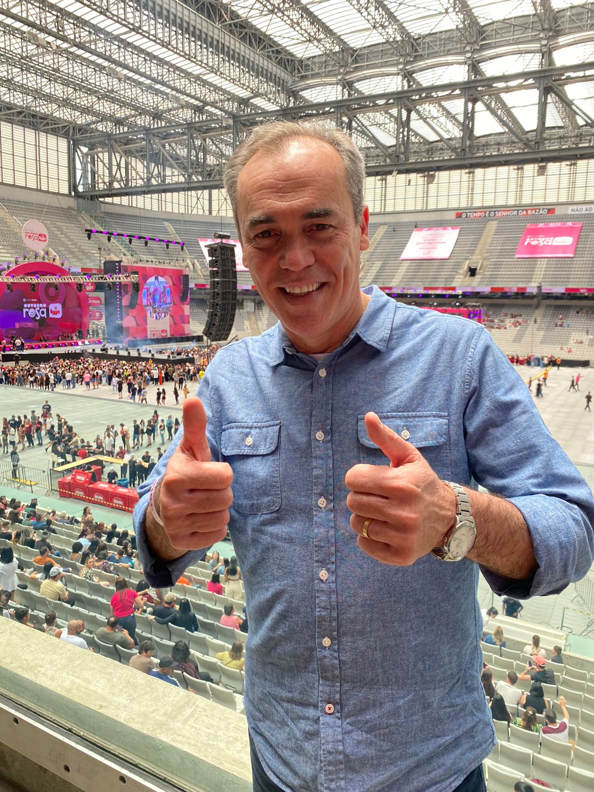 - O apresentador da Rede Massa | SBT, Sandro Dalpícolo, está curtindo o show.