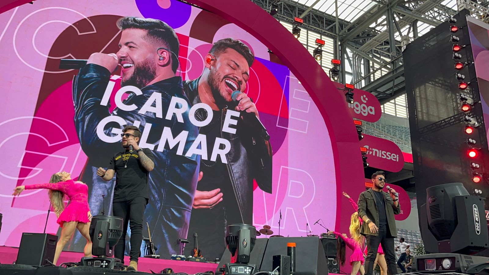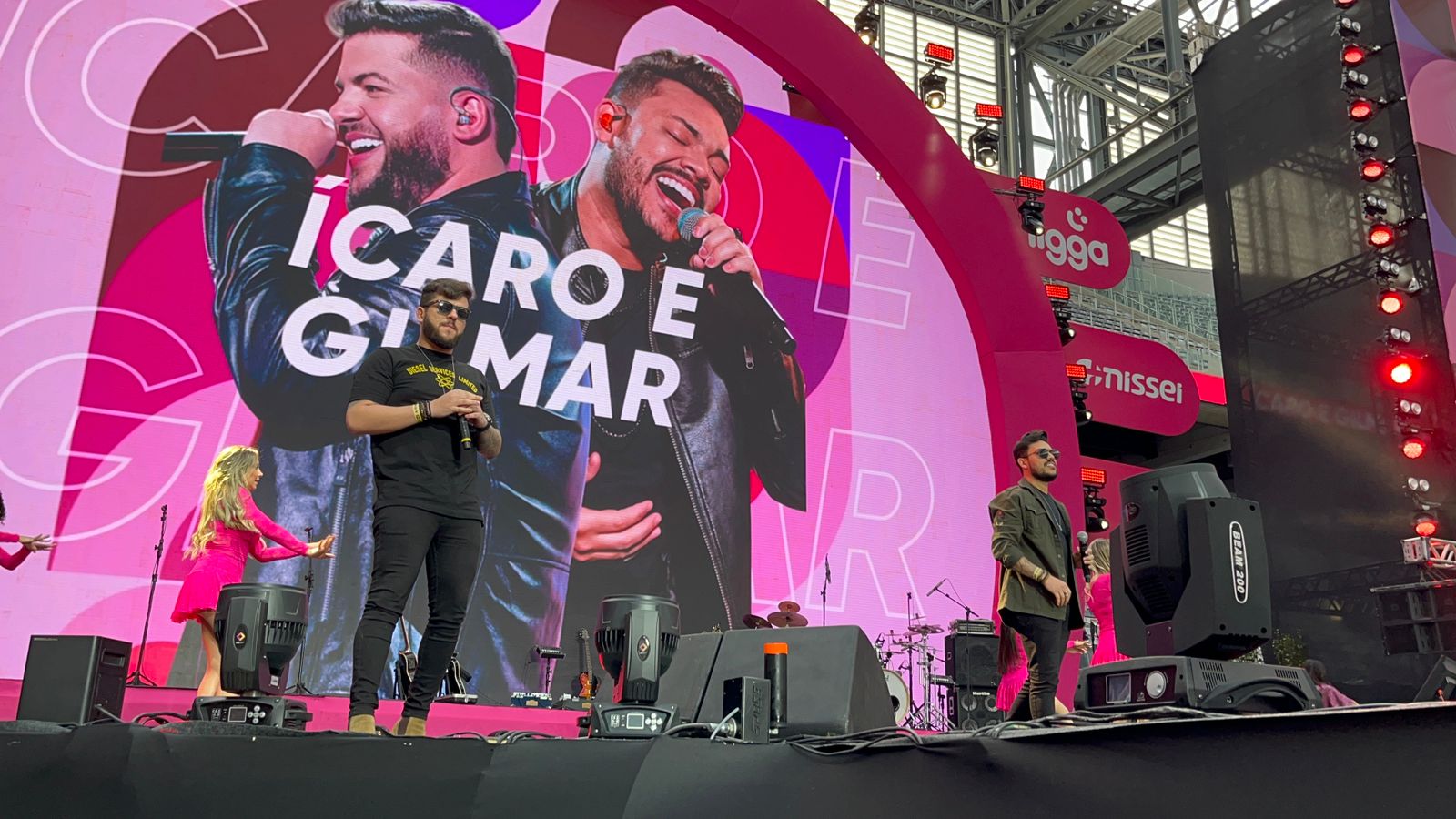 - Agora quem sobe ao palco é a dupla Ícaro & Gilmar. Eles cantam sucessos como “Não me esquecerás” e “Despedida”