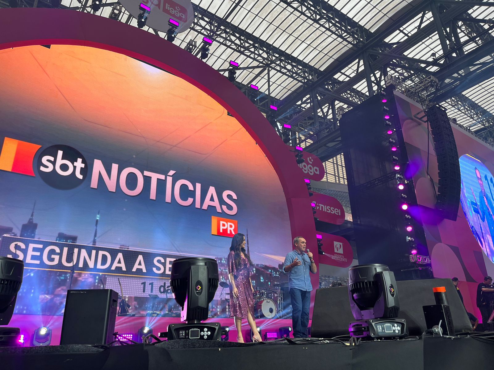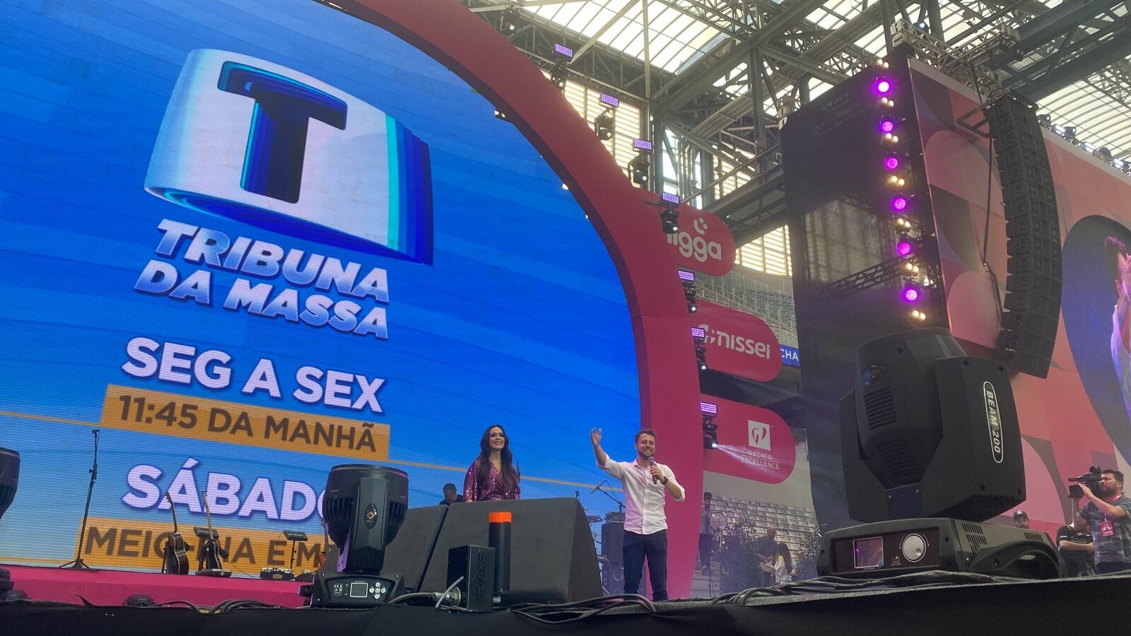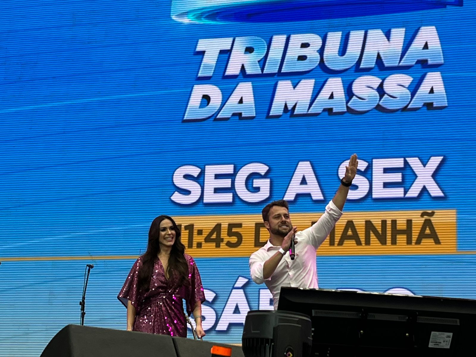 - O apresentador do Tribuna da Massa, Lucas Rocha, marca presença no palco