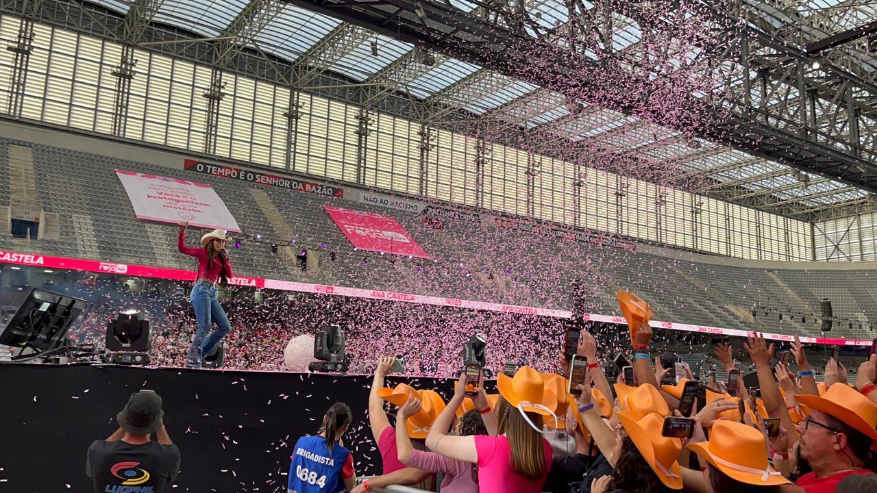 - Quem sobe o palco agora é o fenômeno Ana Castela, com o hit “Boiadeira”