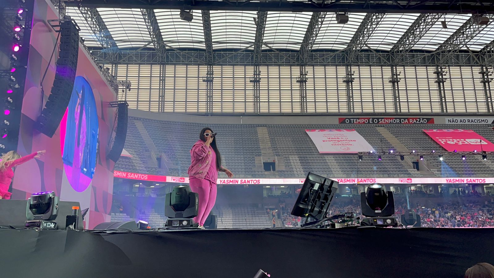 - A cantora Yasmin Santos é quem agora sobe ao palco e canta hits como “Sofro onde eu quiser”