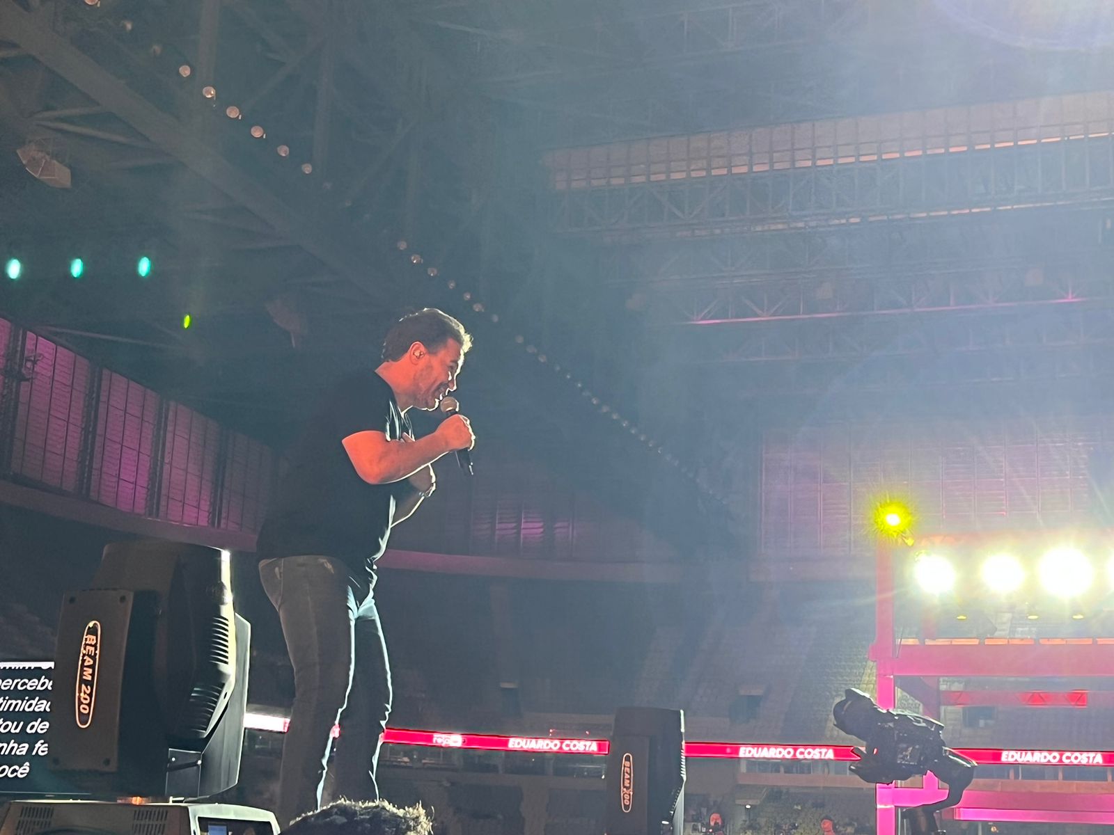 - E começou o último show do Outubro Rosa Ligga! Eduardo Costa sobe no palco e canta “Enamorado”