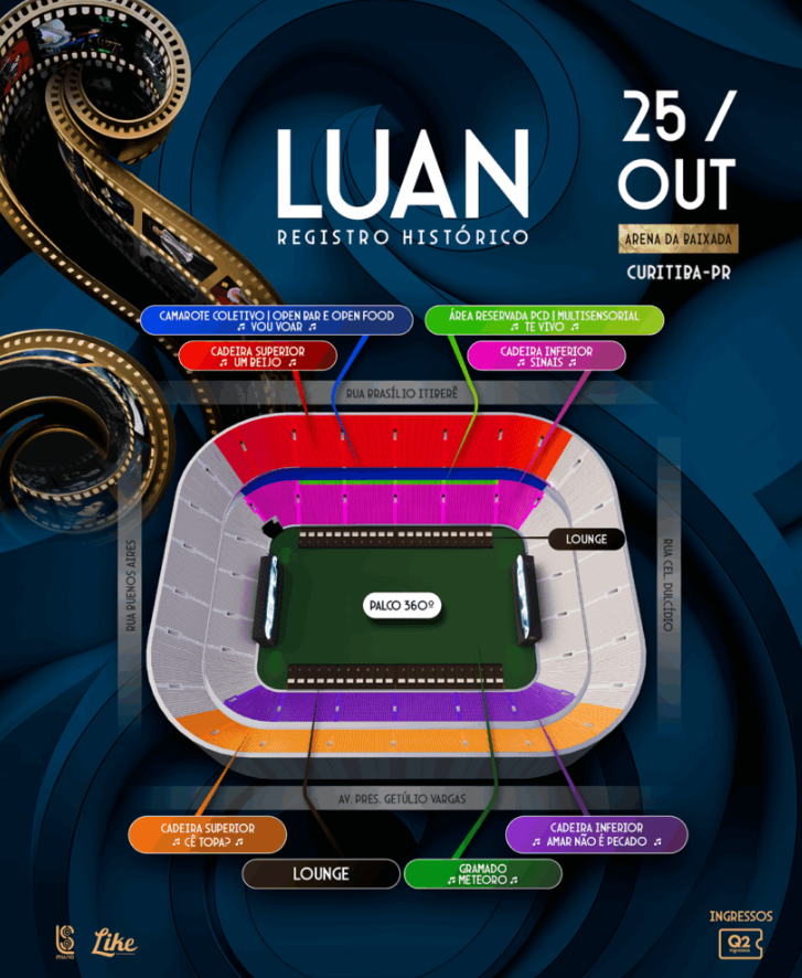 A produtora do show do Luan Santana em Curitiba liberou, nesta segunda-feira (14), o mapa da apresentação da gravação do DVD do cantor na capital paranaense.