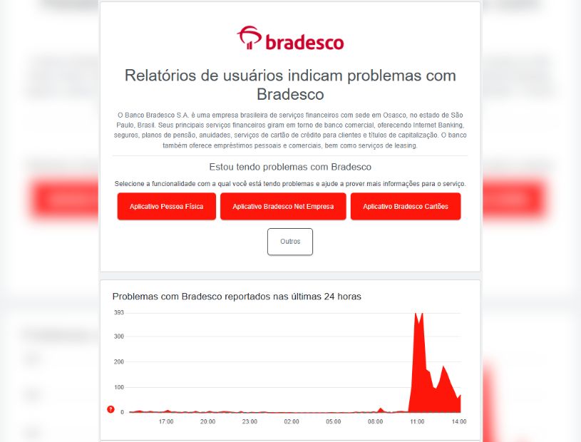 Uma instabilidade no aplicativo deixou o Bradesco fora do ar para diversos clientes nesta sexta-feira. Usuários relataram dificuldades para acessar suas contas e realizar operações bancárias, com um pico de reclamações registrado na plataforma Downdetector.