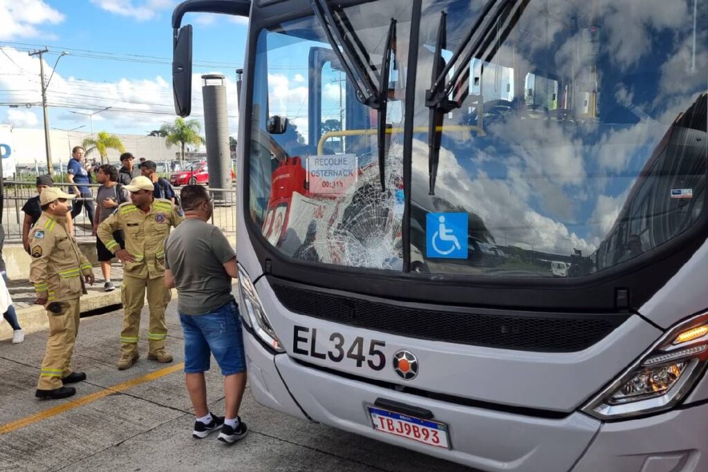 Imagens feitas no local mostram que o parabrisa do coletivo chegou a afundar com a batida. Até o momento, não há informações sobre a dinâmica do acidente.
