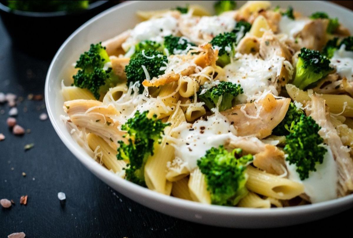Modo de preparo: Aqueça o azeite junto com o bacon e deixe fritar. Acrescente o alho e a cebola e refogue bem. Depois, acrescente o brócolis e o pimentão bem picadinhos e deixe refogando em fogo baixo, com uma panela tampada. Acrescente o macarrão previamente cozido quando o brócolis estiver macio. Acerte o sal ea pimenta e sirva em seguida.