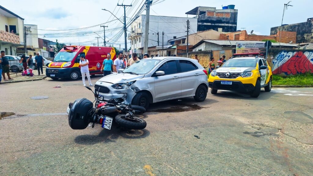 Um homem de 45 anos ficou em estado grave após bater a moto que pilotava contra um carro em Colombo, na Região Metropolitana de Curitiba (RMC). O acidente aconteceu na tarde desta terça-feira (24).