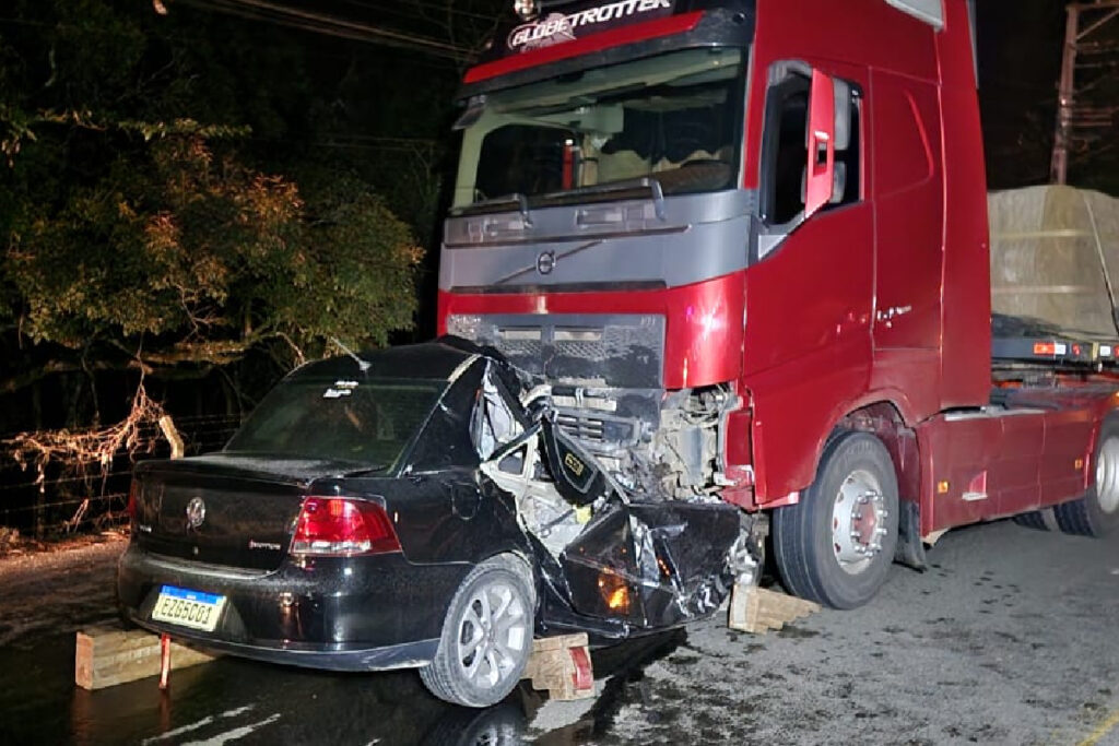 Segundo o motorista do caminhão, o carro seguia na contramão da rodovia. Além disso, o condutor informou que o veículo estava com o farol apagado.