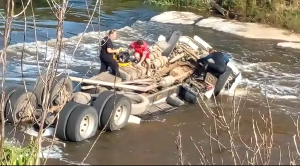 Caminhão despenca de ponte, cai dentro de rio e motorista morre na RMC