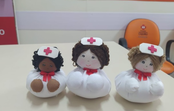 Uma iniciativa que une 38 costureiras voluntárias e 1.021 profissionais de enfermagem que estão na linha de frente da pandemia do coronavírus. Foram mais de mil bonecas de fuxico produzidas ao longo de dois meses para distribuir, como forma de homenagem ao Dia da Enfermagem, celebrado nesta quarta-feira (12), à equipe que tem se dedicado dia após dia aos pacientes.