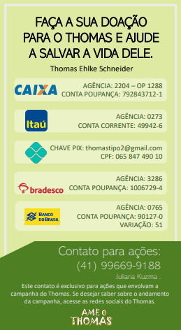 “O Coritiba sempre se engajará em campanhas como essa e daremos nosso suporte enquanto entidade esportiva reconhecida na mídia brasileira para sensibilizar as pessoas que ajudem causas realmente necessárias como essa”, ressaltou o presidente. Na ocasião, foi entregue uma camisa do clube autografada pelos jogadores da equipe profissional que será usada na campanha de arrecadação de fundos para o menino Thomas.