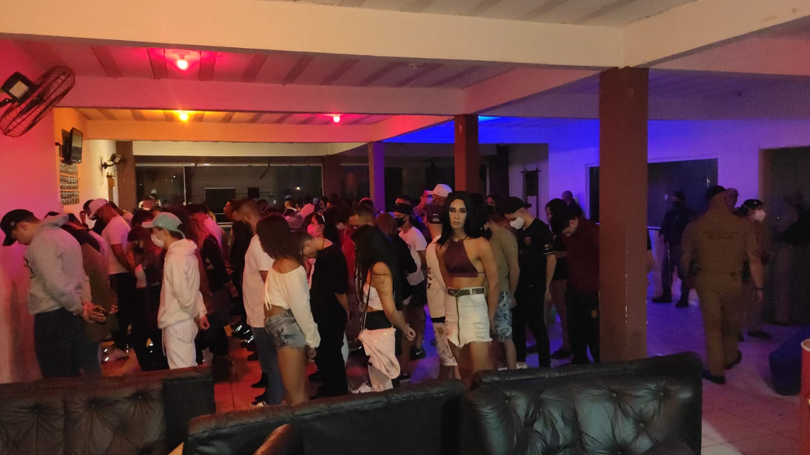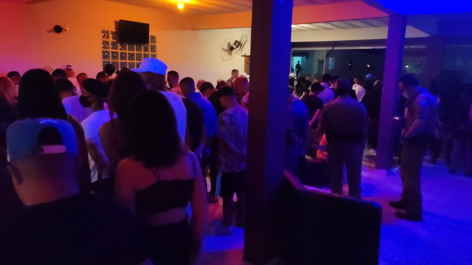 A porta do estabelecimento se encontrava fechada com um cadeado e lonas na janela. Na chegada das equipes policiais, eles foram surpreendidos com cerca de 100 jovens aglomerados e sem o uso de máscaras. As penalidades vão além do termo circunstanciado, e foram aplicadas para todos os jovens que descumpriram as medidas restritivas ao decreto.