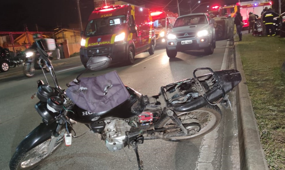 Dois adultos e uma criança se envolveram em um acidente com um motociclista enquanto retornavam de uma trilha, na noite deste domingo (16), no bairro Xaxim, em Curitiba. A batida aconteceu na Linha Verde e o veículo chegou a capotar. No local foi ventilada a informação de que um dos condutores teria avançado o sinal e causou revolta em um das vítimas.