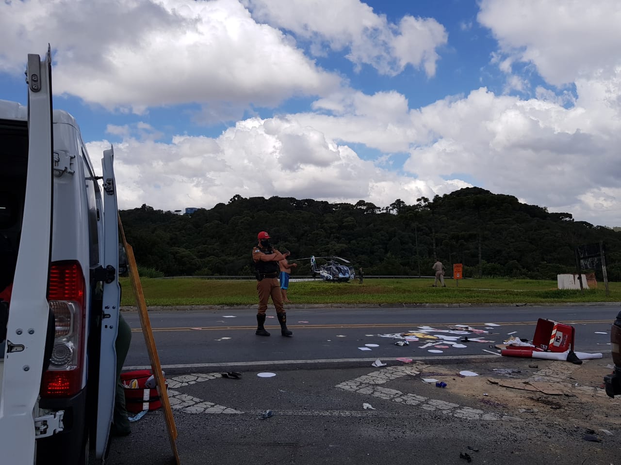 Com apoio de socorristas do Samu e do Batalhão da Polícia Militar de Operações Aéreas (BPMOA), o trabalhador foi encaminhado de helicóptero ao Hospital Cajuru, em Curitiba, correndo risco de morte. O motorista da caminhonete permaneceu no local do acidente.
