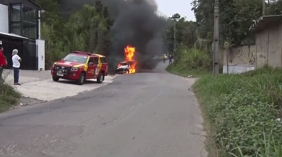 Motorista percebe fumaça saindo do capô e carro é consumido pelo fogo na Grande Curitiba