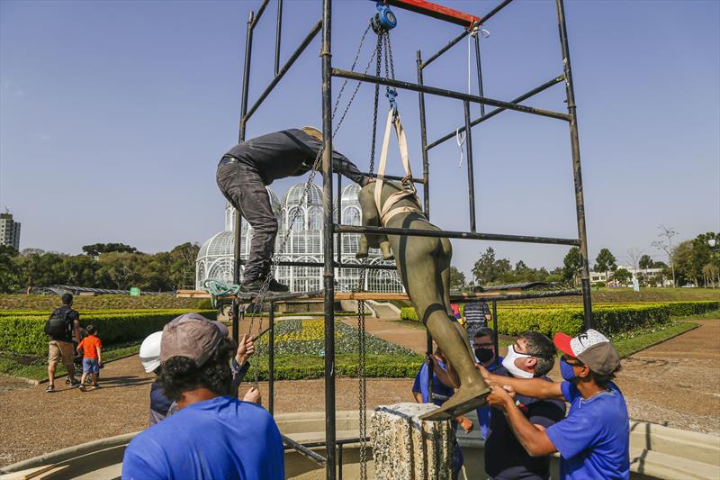O trabalho, feito em conjunto com a Fundação Cultural de Curitiba, tem previsão de duração de dois meses e começou nesta quarta-feira (18/8) com a retirada da peça, levada ao ateliê de esculturas do Memorial Paranista.