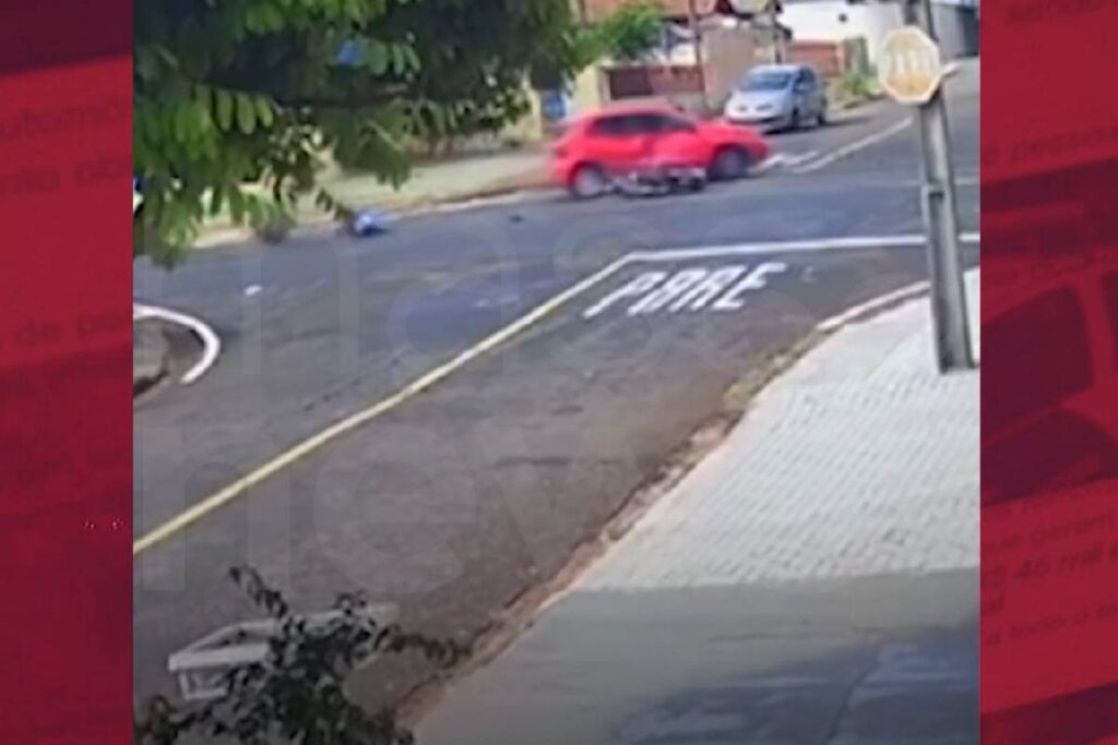 Nas imagens, é possível ver que o carro invadiu a contramão para fazer uma conversão à esquerda. Em seguida, a motocicleta, que seguia pela Rua Serra da Graciosa, acertou a lateral do veículo.