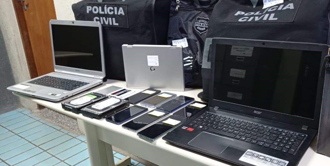 Além dos materiais eletrônicos apreendidos, a Polícia Civil também encontrou uma espingarda. Os suspeitos presos foram encaminhados à delegacia e devem responder pelos crimes de organização criminosa e estelionato.