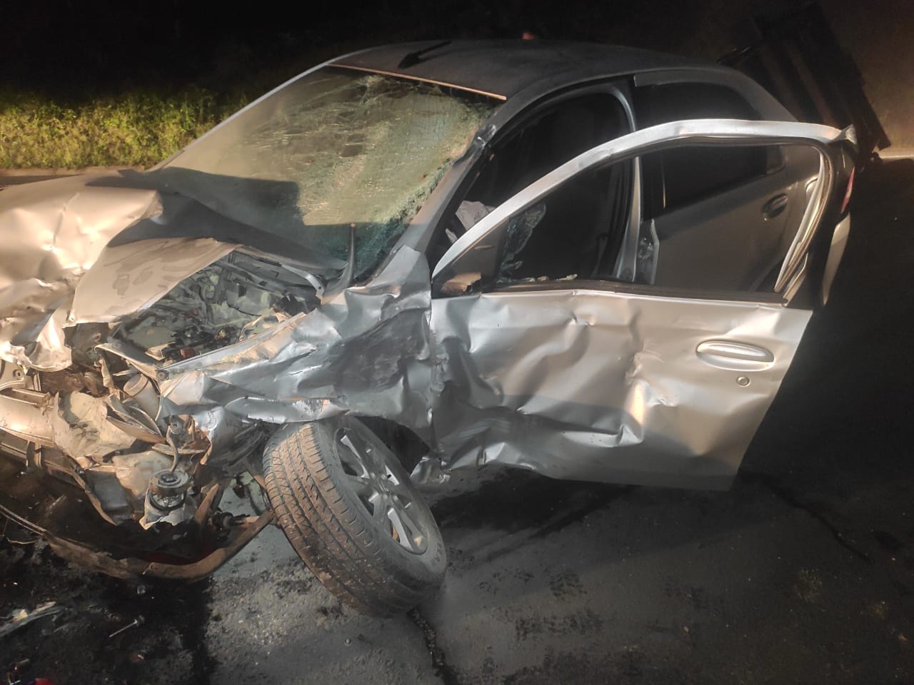 Segundo a Polícia Rodoviária Federal (PRF), um dos veículos seguia na contramão. A batida aconteceu por volta das 18h50. Um Toyota Etios com placas de Laranjal e um Fiat Palio de Palmeira seguiam pela rodovia e colidiram frontalmente, no km 179.