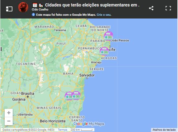 Ainda neste ano, ocorrem mais duas datas de eleições suplementares. Em 11 de dezembro, a cidade mineira de Divisa Alegre vai às urnas, já em 27 de novembro será a vez dos eleitores de Maiquinique (BA), Maraial (PE). Canguaretama (RN) e Pedro Velho (RN). Confira o mapa abaixo: