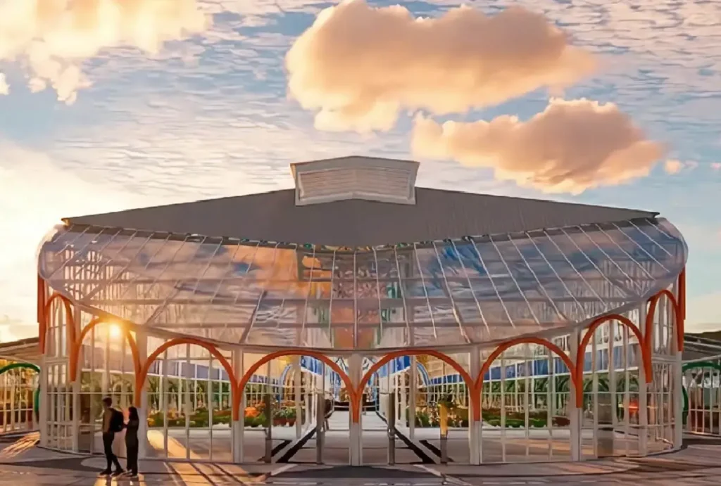 A iluminação natural é um dos pilares do projeto. As fachadas laterais terão grandes panos de vidro, com cerca de nove metros de altura, permitindo entrada abundante de luz, essencial para a conservação das plantas.