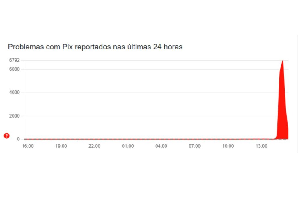 De acordo com a plataforma Downdetector, que monitora o funcionamento de serviços digitais, o pico de reclamações do pix estar fora do ar ocorreu por volta das 14h40, acumulando mais de seis mil notificações em poucos minutos.