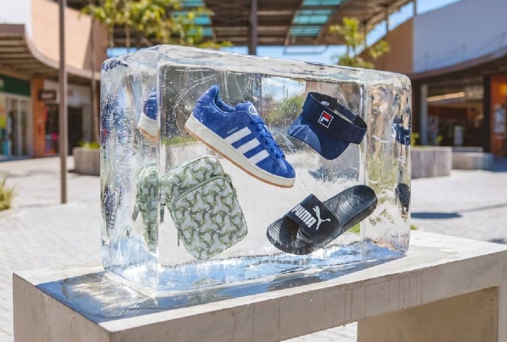 A ativação que garante promoções no Outlet de Campo Largo funciona da seguinte forma: os participantes terão dois minutos para tentar retirar os produtos que estarão dentro de um grande bloco de gelo.