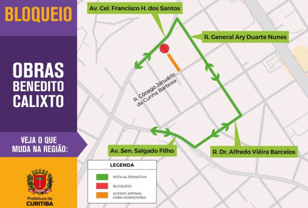 Para a Benedito Calixto, os motoristas devem acessar a Rua General Ary Duarte Nunes e seguir pela Dr. Alfredo Vieira Barcelos até a Avenida Senador Salgado Filho. O acesso local para moradores está liberado via Rua Cônego Januário da Cunha Barbosa.